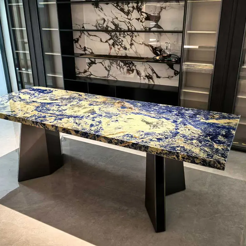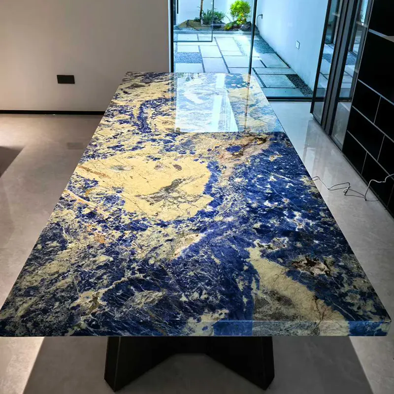 Il pavimento in granito blu, l'isola della cucina in granito blu, il backsplash in granito blu e persino il tavolo da pranzo in granito blu sono tutti appropriati per l'uso nelle applicazioni domestiche e aziendali a causa della sua versatilità.