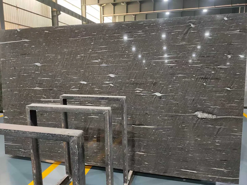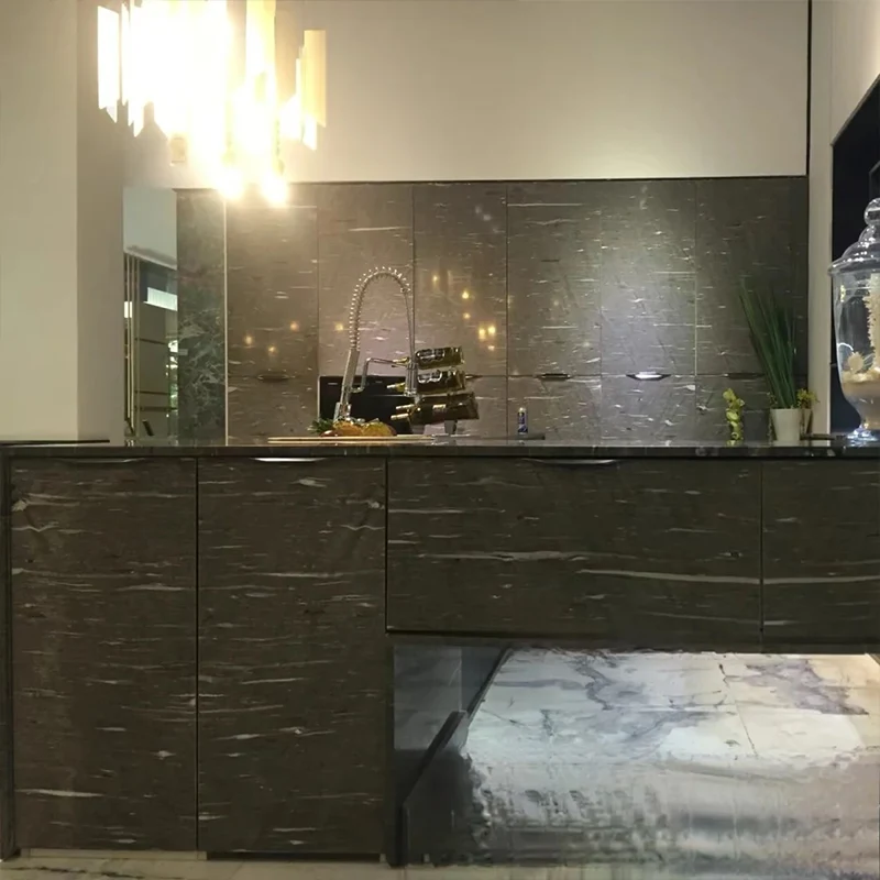Il granito di seta nera è un materiale speciale per il design degli interni di fascia alta, poiché il suo colore nero scuro contrasta elegantemente con venazioni argento e bianche.