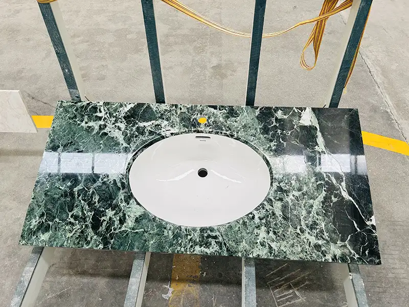Conosciamo molto bene questo materiale su Wow Stone. Abbiamo più di 1.000 metri quadrati di lastre di marmo verde imperatrice in magazzino. Possiamo tagliarli e modellarli in vassoi, piastrelle o pezzi personalizzati. Facciamo tutto nella nostra fabbrica con la nostra stessa gente. Ciò significa che possiamo assicurarci che la qualità sia buona in ogni fase, dalla scelta del blocco grezzo alla lucidatura a imballarlo.