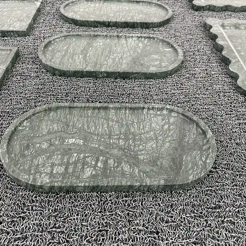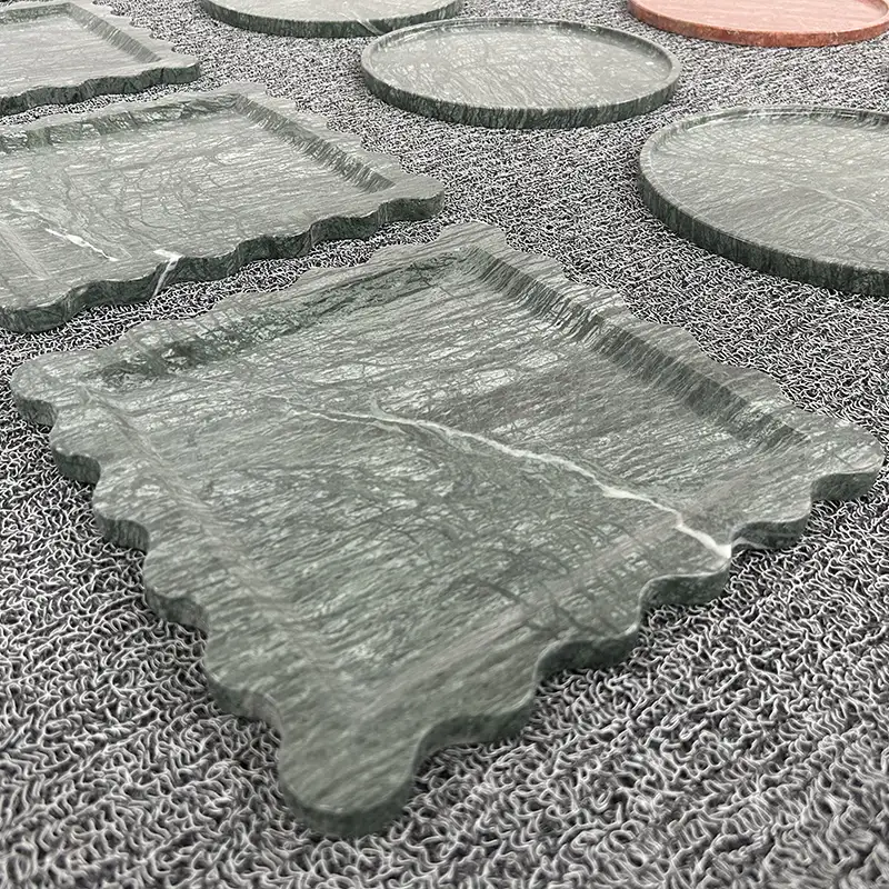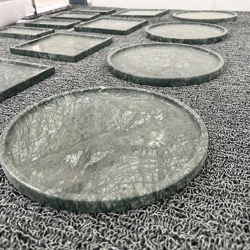 Da un vassoio di marmo verde in miniatura a dimensioni di un viaggio a un vassoio di marmo verde estremo e audace, li abbiamo tutti. Ad alcune persone piacciono i bordi dritti di un vassoio rettangolo in marmo verde, mentre altri amano la forma rotonda di un vassoio del cerchio di marmo verde o vassoio in marmo verde rotondo. Un vassoio in marmo verde ovale è anche estremamente elegante e un vassoio quadrato in marmo verde è estremamente minimalista. Tutti mostrano la bellezza naturale della pietra, ma ognuna è diversa.
