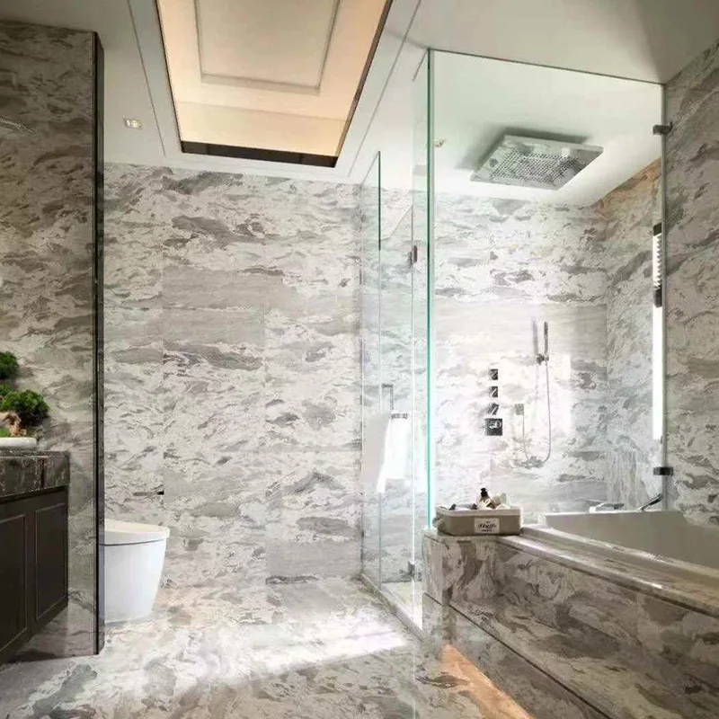 Applicazioni del bagno: accessori per bagno in marmo bianco, idee per il bagno in marmo di lusso e piastrelle per il bagno in marmo di lusso spesso sono dotate di lavandini abbinati, scaffalature di nicchia e pareti della doccia. Il modo in cui il modello rimane lo stesso rende lo spazio più pacifico.