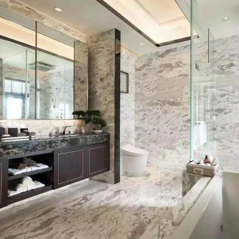 Piastrelle per pavimenti: sono preferiti i formati di lastre da 800x800mm e più grandi per le aree aperte. Le piastrelle del pavimento in marmo bianco lucido e del pavimento del bagno in marmo bianco riflettono visivamente la luce e ingrandisci lo spazio.