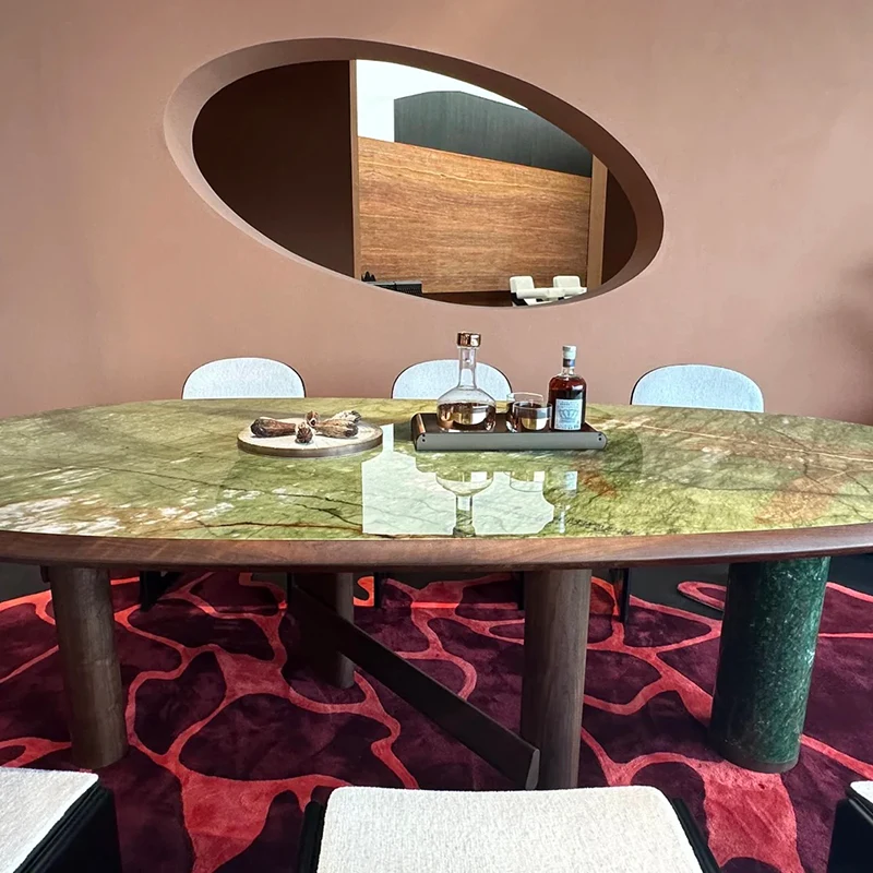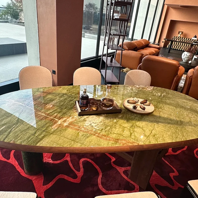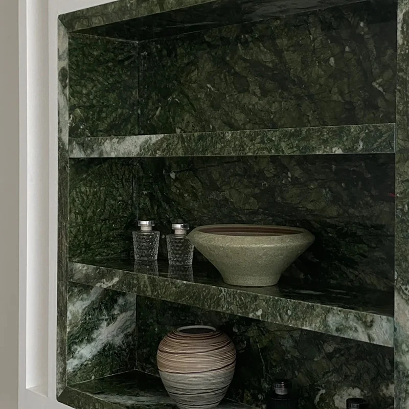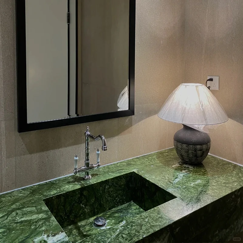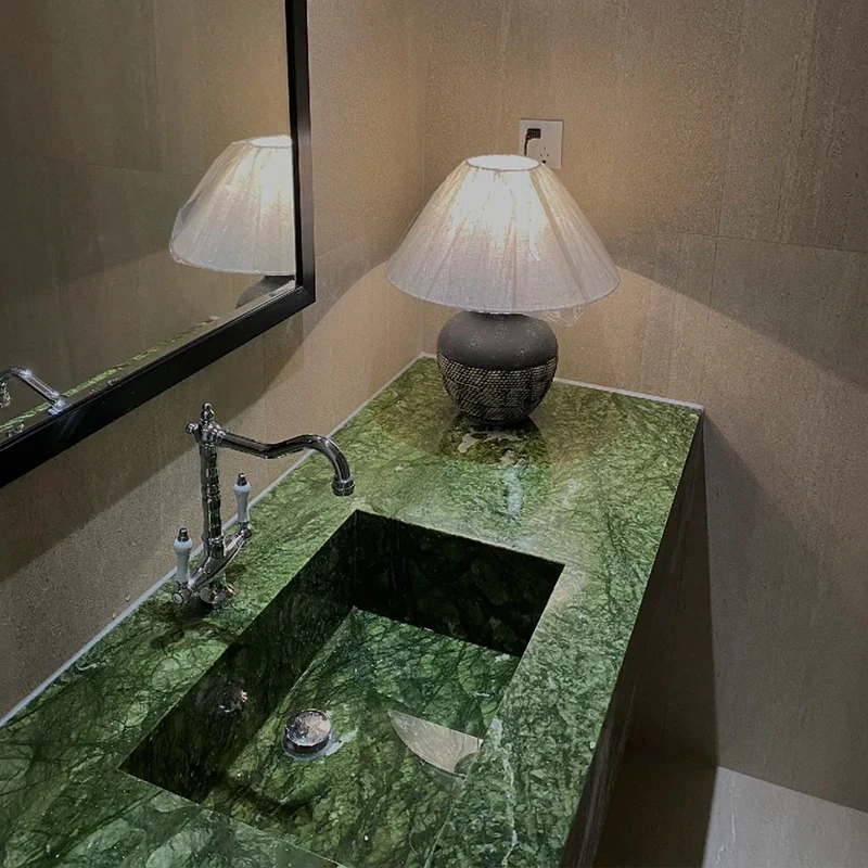 Elementi di design personalizzati: controsoffitti, tavoli, panchine, sculture o altri pezzi speciali possono dare a qualsiasi atmosfera domestica una proprietà insolita ed esclusiva di Ming Green Marble.