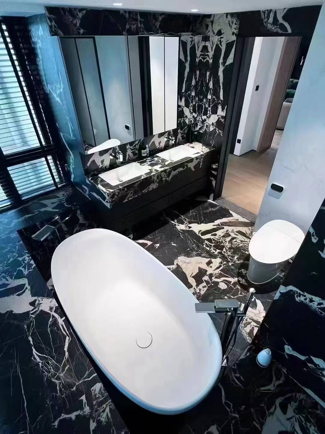 La marquina dagli anni '90, il marmo nero, noto anche come Marquina cinese, ha guadagnato popolarità. È elegante e adattabile grazie alla sua tonalità nera e profonda con vene bianche sorprendenti.