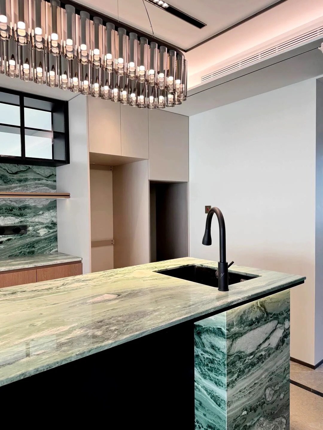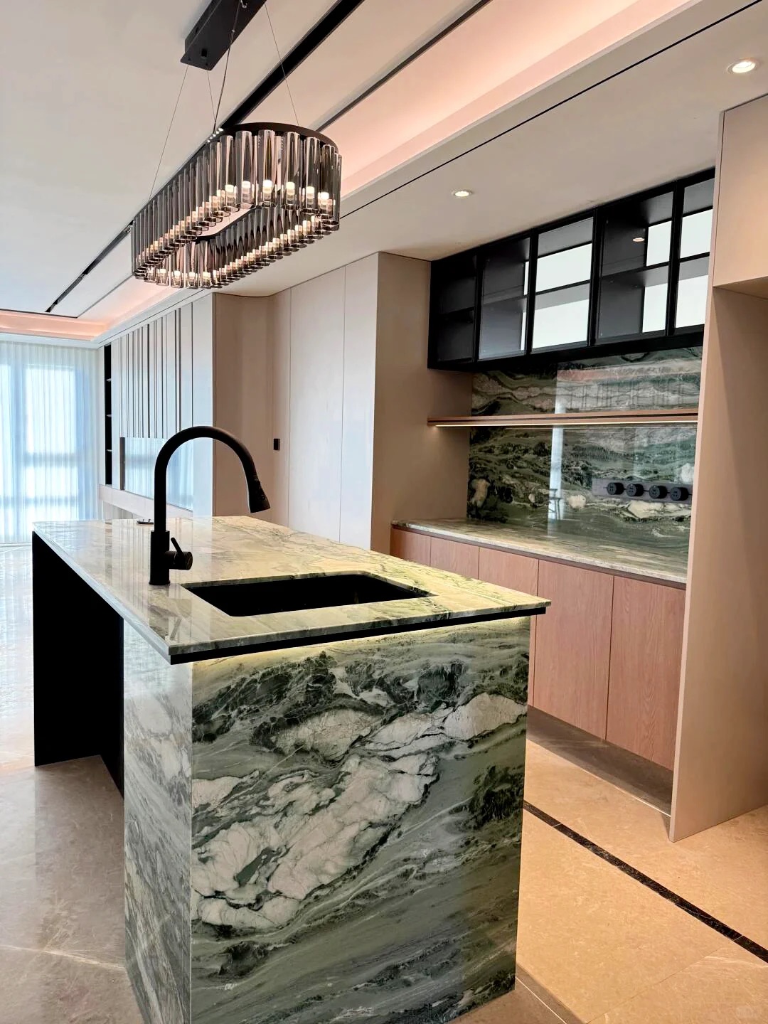 Verde Alpi Marble:Verde Alpi Marble è un marmo di lusso con colore verde e meno venati. È perfetto per qualcuno che non desidera un aspetto contemporaneo.