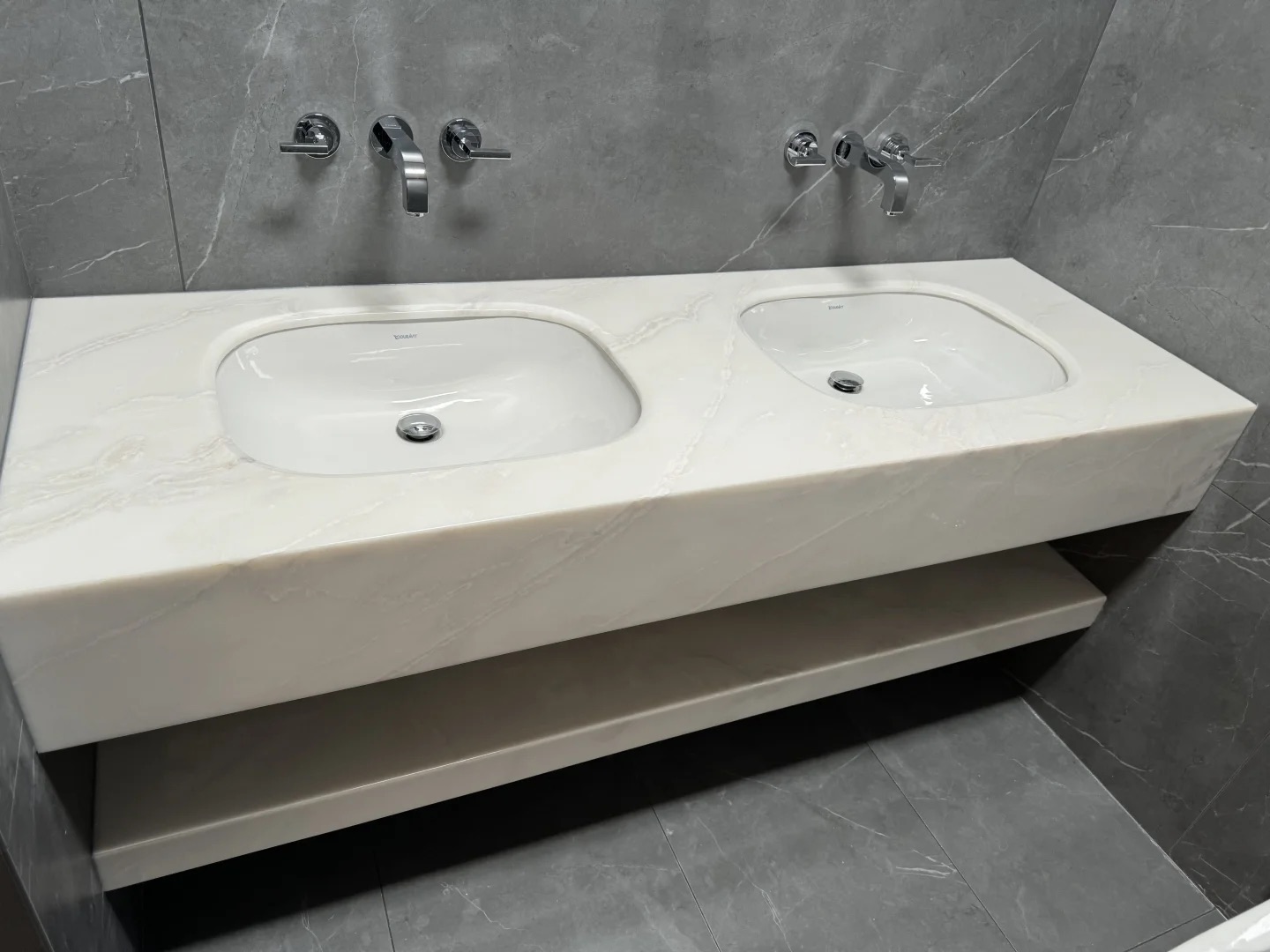 Un controsoffitto per vanità del bagno in marmo fornisce il fascino simile a una spa. Il piano di lavoro del bagno in marmo è liscio sensibile al tocco e quindi meglio per l'uso quotidiano. Il bacino da banco in marmo aggiunge un po 'di spezie e il piano di lavoro in marmo retroilluminato può trasformare la stanza in un rifugio pacifico. Lo sfondo del controsoffitto in marmo fornisce profondità alla decorazione del bagno, rendendo una stanza normale un'oasi. La parte superiore del marmo rotondo può essere collocata nel soggiorno come tavolo laterale per fungere da tocco finale. Puoi scegliere un piano di lavoro in marmo bianco se hai bisogno di un aspetto leggero. Puoi scegliere un piano di lavoro in marmo nero se hai bisogno di un aspetto elegante. Un piano di lavoro in marmo per il bagno è resistente all'acqua e facile da lavare quando sigillato.