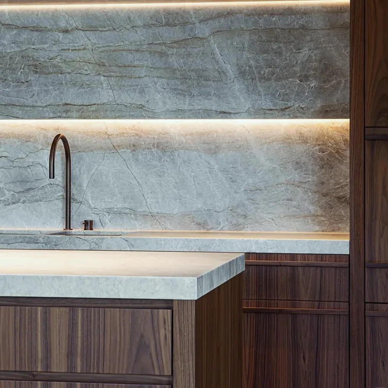 I toni morbidi di questa quarzite, che vanno da avorio e beige a deboli oro sotto l'illuminazione artificiale o naturale, sono ciò che lo rende così noto. La parte migliore, davvero? È un po 'traslucido. Ciò implica che i disegni di quarzite Taj Mahal retroilluminati siano davvero magici e del tutto fattibili.