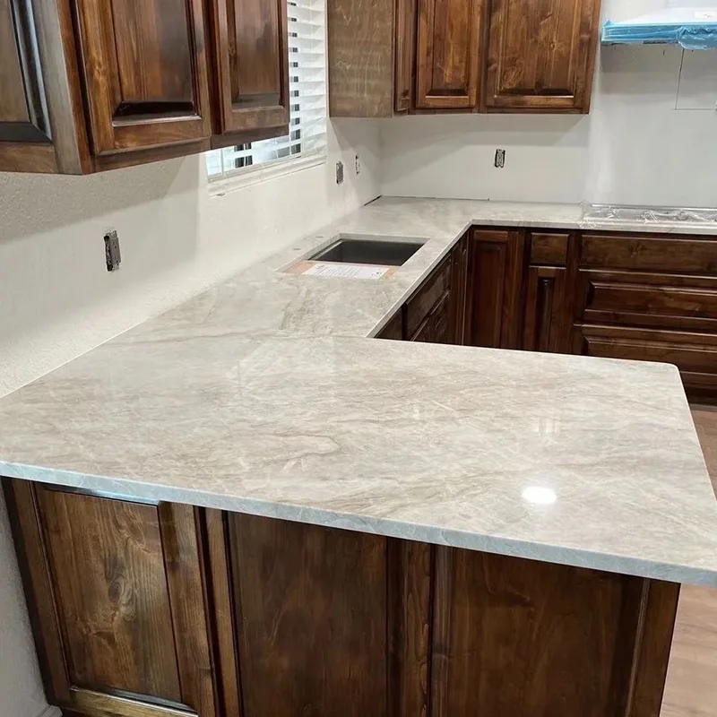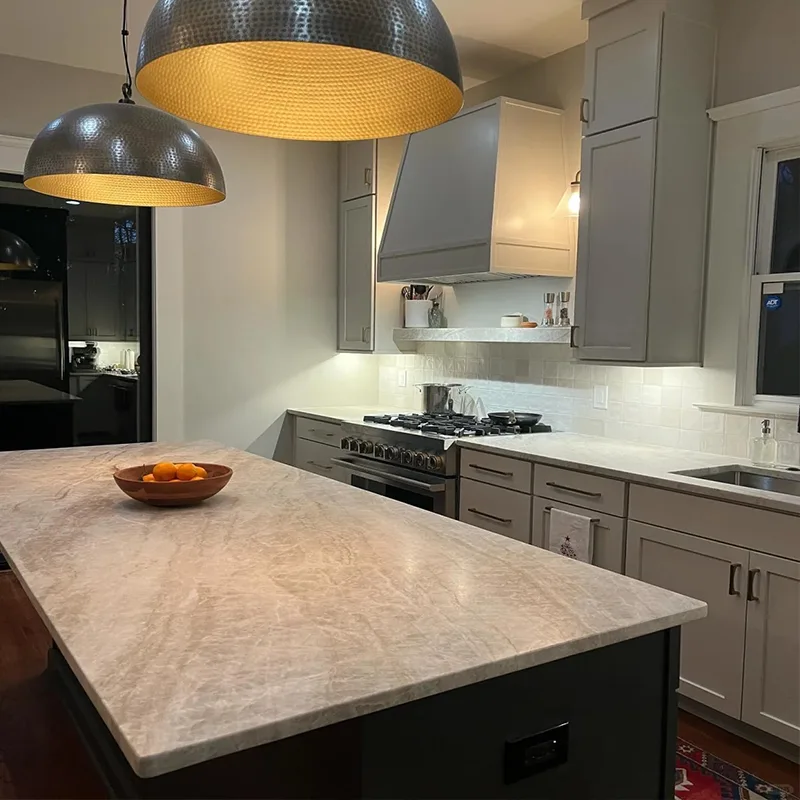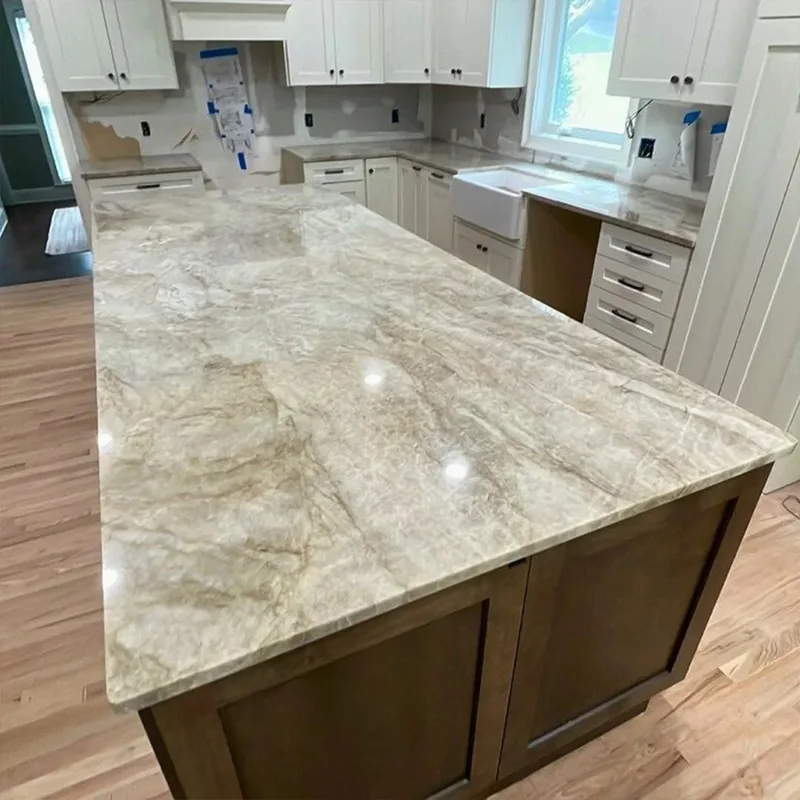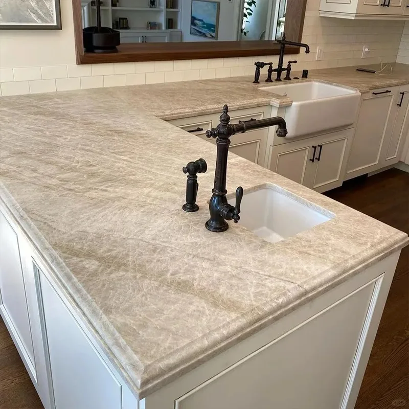 Questo materiale naturale continua a conquistare cuori in tutto il mondo con le sue infinite opzioni per il controsoffitto di quartzite Taj Mahal e il backsplash, i bordi del quartzite Taj Mahal, le idee per controsoffitto di quarzite e i controsoffitti in pietra per ogni stanza.