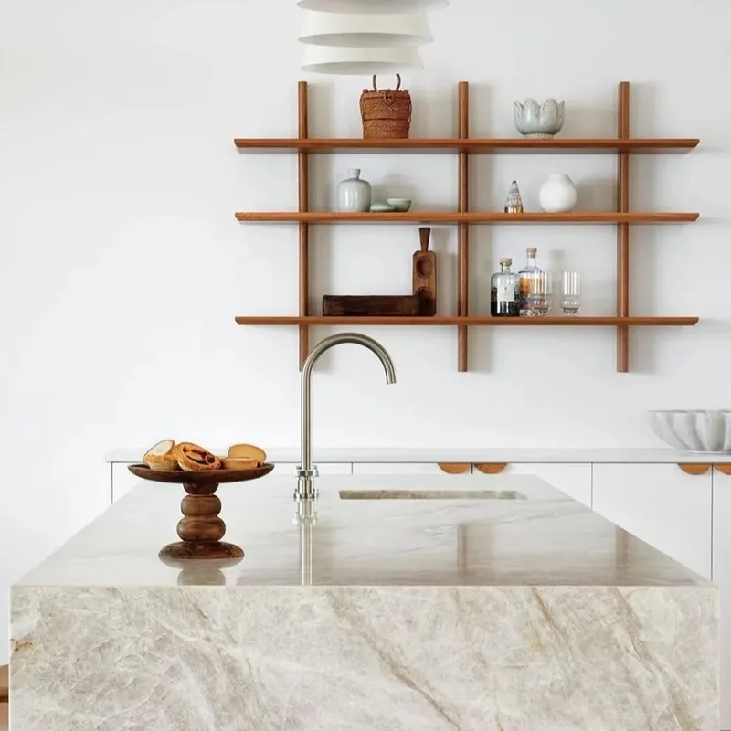Australia: un mercato in crescita per le installazioni di banco di quarzite Taj Mahal, spesso abbinate a mobili in legno e infissi moderni.