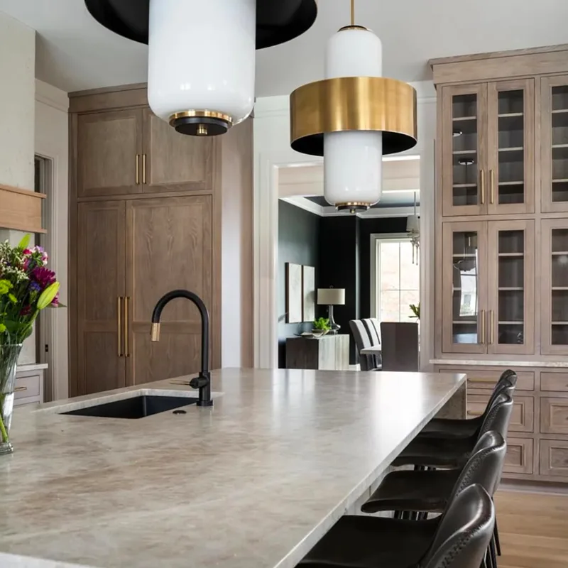 Inoltre, per coloro a cui piace una superficie opaca, testurizzata, le finiture di quarzite in pelle Taj Mahal stanno diventando sempre più popolari. È molto utile per l'uso di cucina ad alto traffico e dà al piano di lavoro un aspetto naturale e organico.