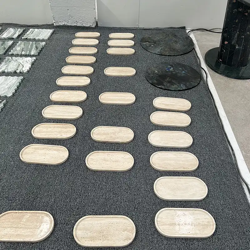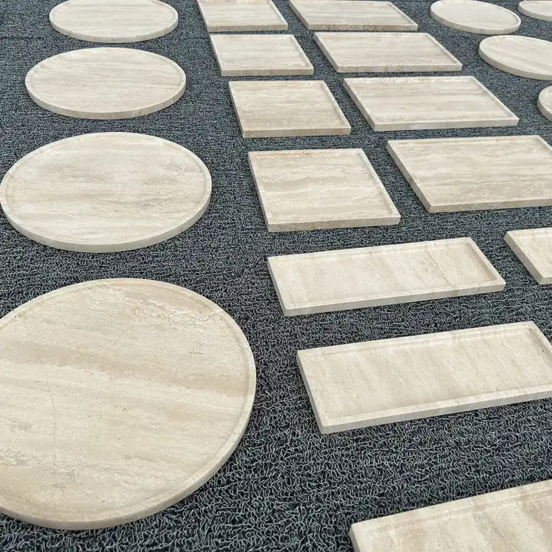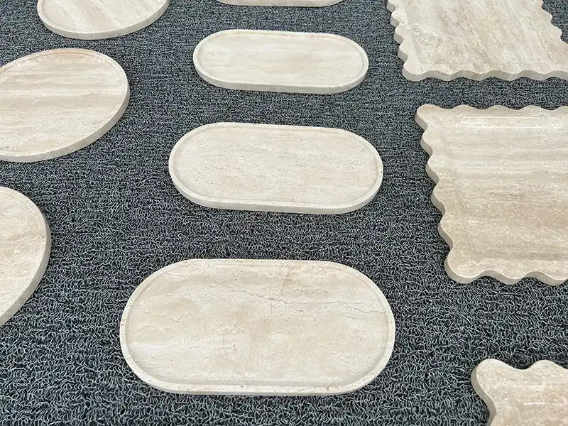Il vassoio di travertino rotondo, il vassoio di travertino ovale, il grande vassoio di travertino rotondo, il vassoio di travertino smerlato, il vassoio di travertino piccolo, ecc., Sono solo alcune delle tante forme e dimensioni dei vassoi di travertino. Le dimensioni personalizzate e i profili dei bordi sono offerti anche da fornitori come WOW Stone.