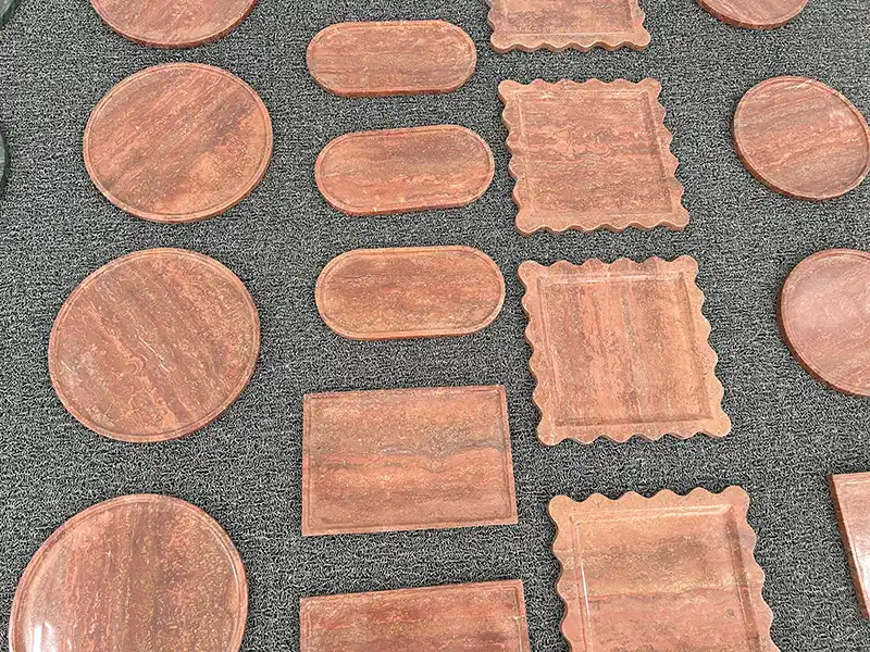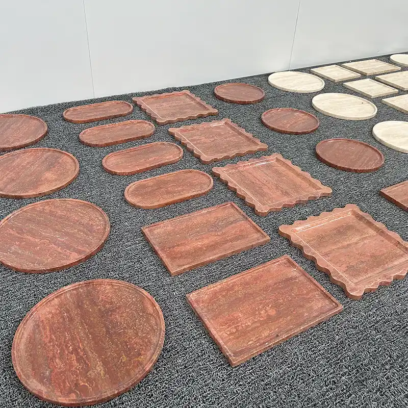 Quali sono alcuni stili e forme di vassoi di travertino?