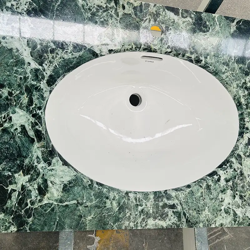 Prestiamo molta attenzione a ogni top di vanità in marmo personalizzato che facciamo, indipendentemente dalla forma o dalla dimensione. Ciò include la scelta delle piastrelle o la lastra di marmo Verde giuste, la lucidatura, l'imballaggio e la spedizione.