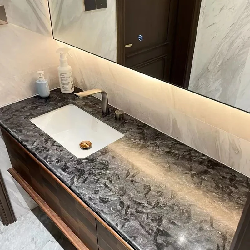 Black Granite Bagni Vanity Top: in quel momento ti appoggi contro il lavandino mentre ti lavi i denti? La finitura luccicante è liscia come la seta al tatto e rinfrescante, facendo compiti quotidiani piccoli piaceri.