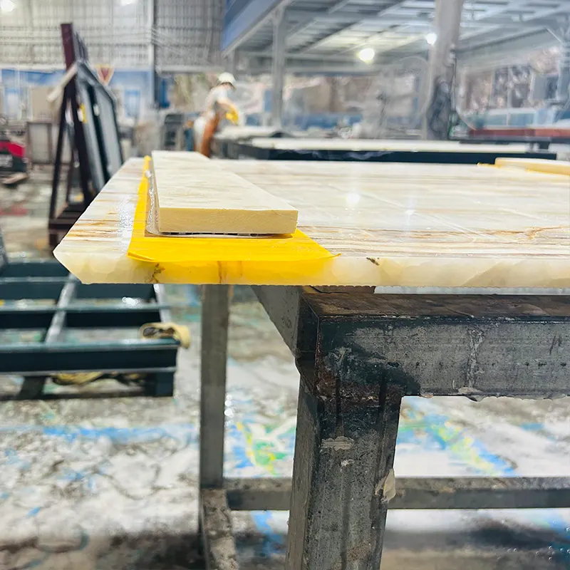 SÌ. La traslucenza di Onyx bianco quando l'ambiente e la resistenza all'acqua lo rendono una buona scelta per i bagni. Se combinato con illuminazione morbida, aggiunge una bellezza simile a una spa allo spazio.